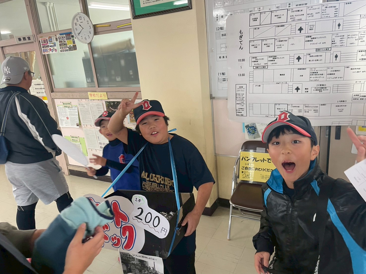 選手はホットドッグ売り歩き、ストラックアウトお手伝い、バザー声かけ。父コーチ達はストラックアウト対応、母達はホットドッグ作りやバザー等々、皆で楽しみながらフェスティバルに参加することができました。